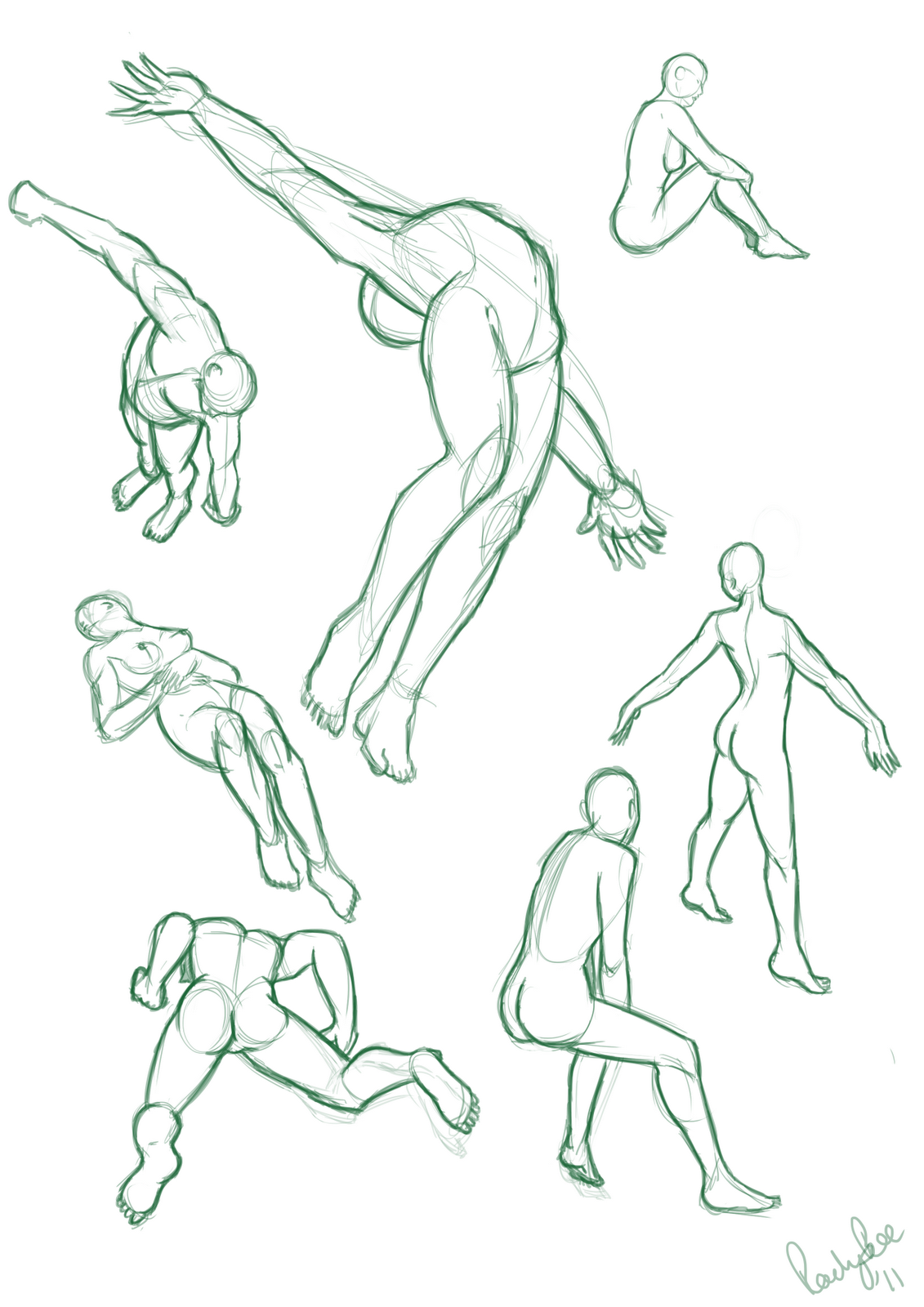 I've been practising some poses, perspective and twisting using the random pose viewer on www.posemaniacs.com. It gave me some crazy poses but I tried most of them (I had difficulty seeing what was going where on a few) and I'm pretty happy with them. Especially some of the perspective ones, perspective is one of my weaker areas. And butts. I used to have trouble drawing butts but now I think I can draw a pretty decent one haha!